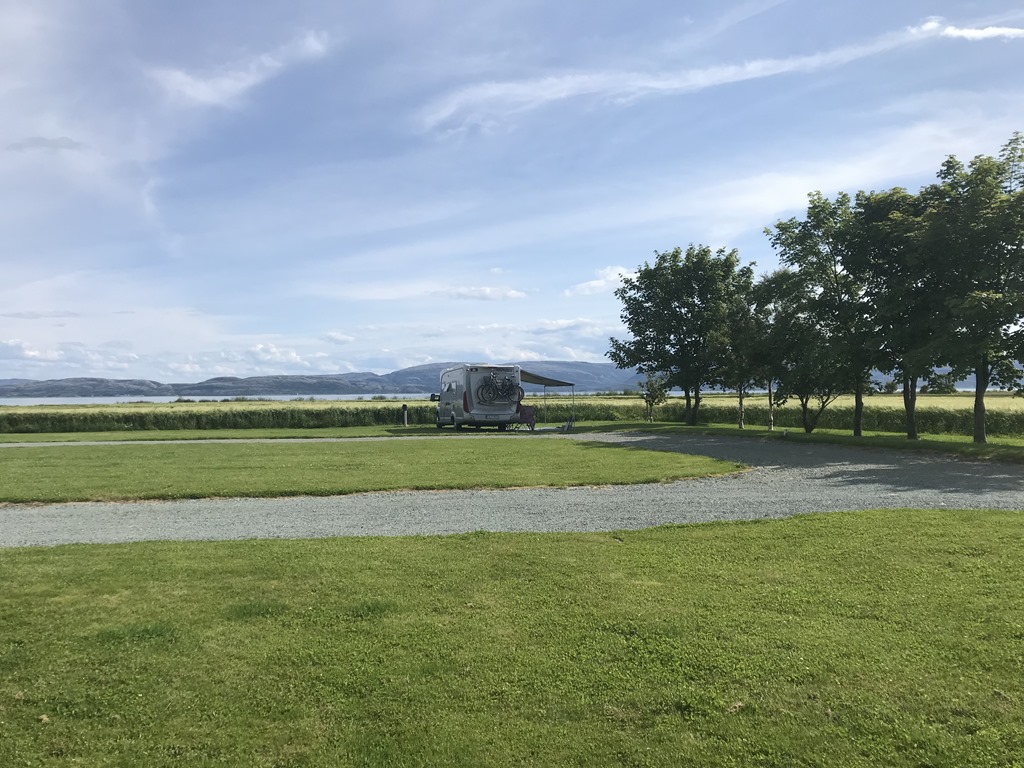 Vid lunchtid så stannade vi till på en ställplats utanför Osen och åt lunch. Här fanns inga faciliteter men det var gratis och här stod faktiskt en hel del husbilar. Kan tänka mig att det var delvis för utsikten men mest för fisket i tidvattenströmmen.