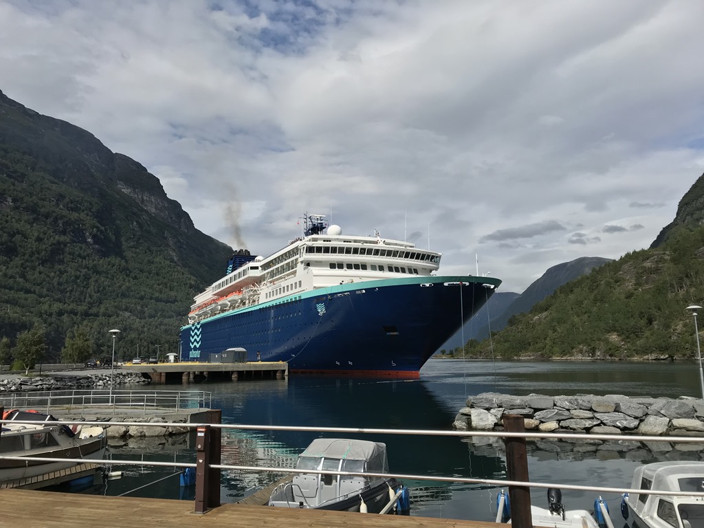 När vi kommer tillbaka så kommer det en kryssningsbåt och förtöjer.