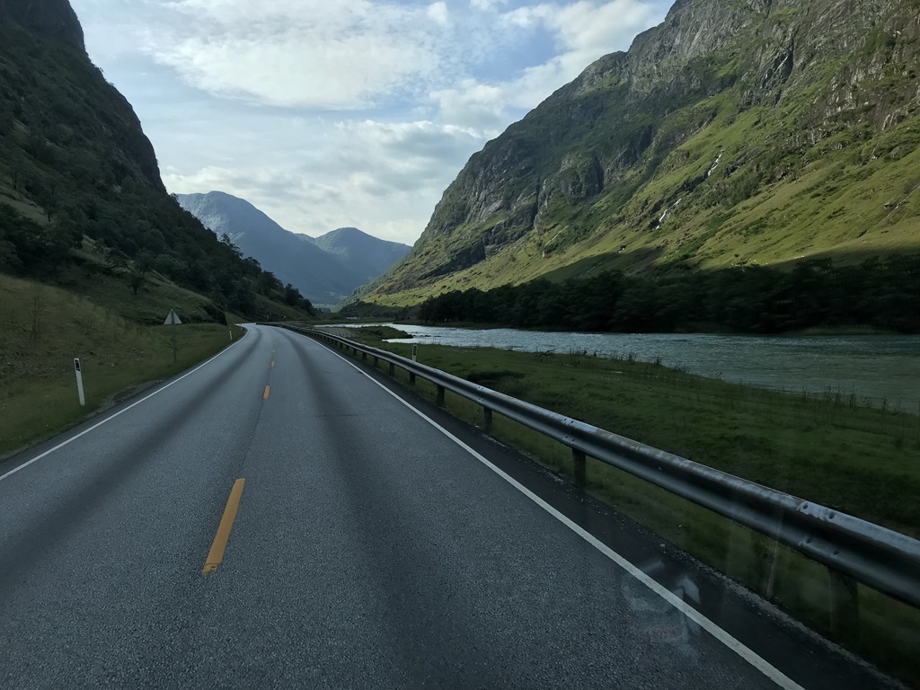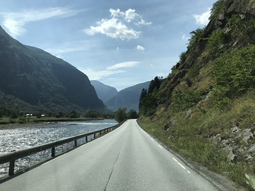 09:00 Vi började färden först västerut och sedan över fjället. Det var riktigt fint genom dalen mot Skei.