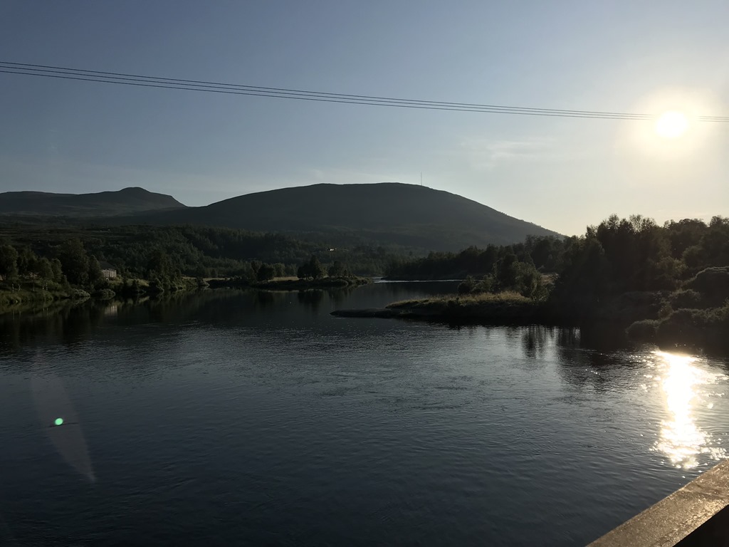 Till kvällen så gick vi en liten tur längs med älven och det var 28 grader varmt och vindstilla. Men de säger att temperaturen sjunker ganska fort på kvällen.