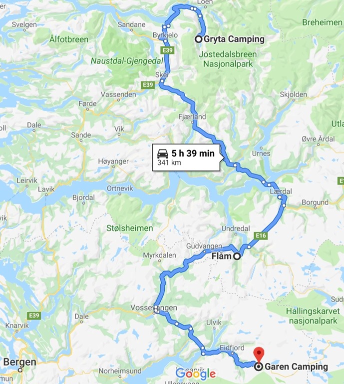 Idag har vi kört 341 km enligt följande rutt.