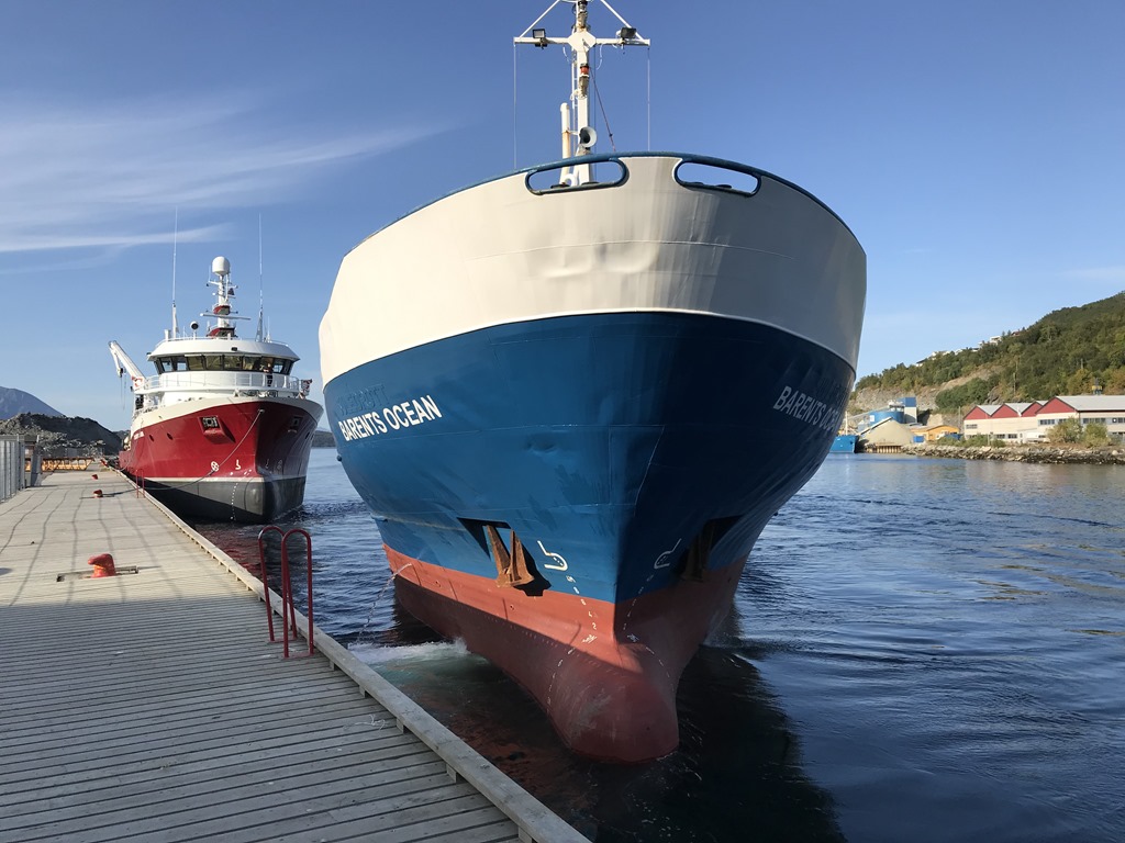 18:00 Vi startar upp maskin eftersom Barents Ocean skall avgå. Vi lämnar sedan utsidan av dem och vänder runt i hamnbassängen medan de backar ut.