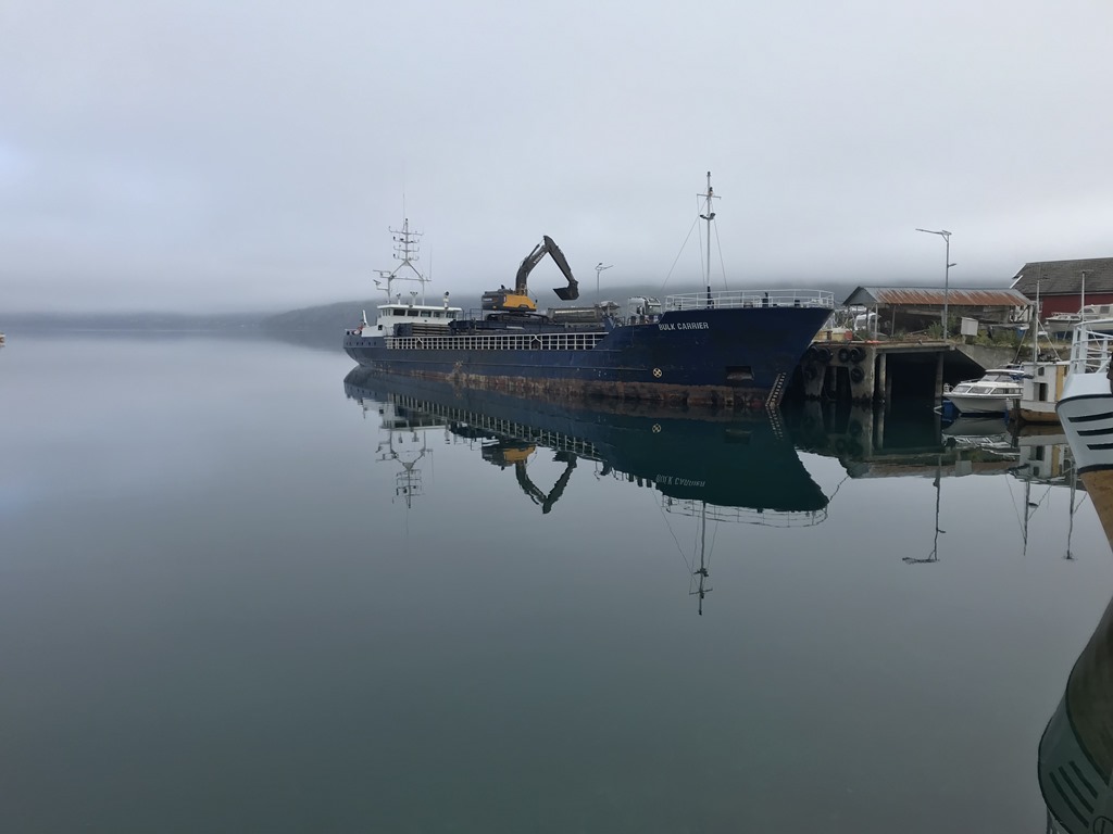 22:35 Förtöjda på Kasfjord men det kommer inte bli lastning innan 1 i natt. Så jag skickar besättningen i säng och sätter mig med lite rapporteringar och papper.