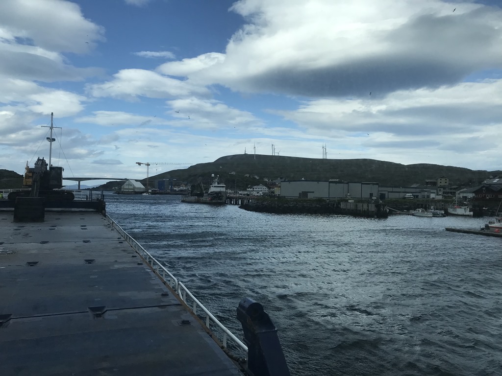 08:00 Kommer på vakt och fortsätter mot Havöysund. Det blåser 15-18 m/s idag och är väldigt mycket ström i sundet så det blir en spännande manövrering i den trånga hamnen. Kajen som de tyckte vi skulle gå till vill inte jag ens försöka med.