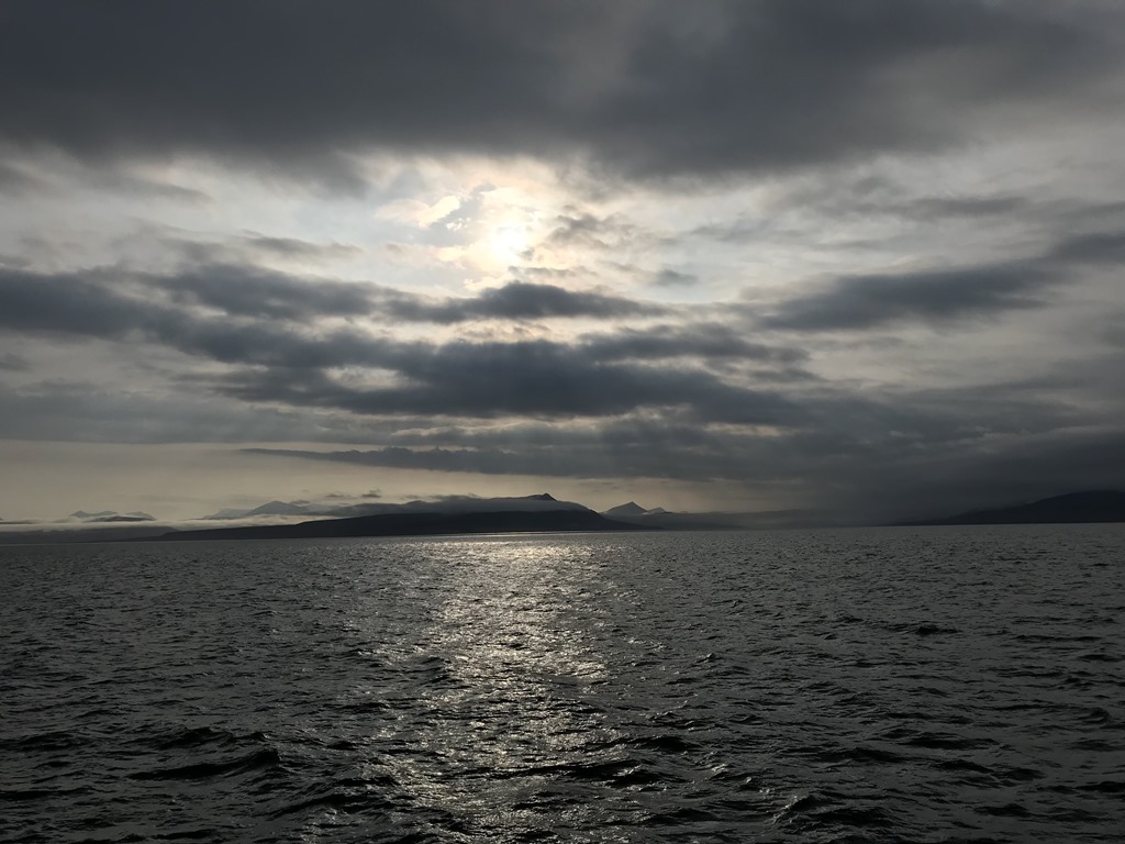 08:00 Kommer på vakt och vi är precis i mynningen på Isfjorden. Vinden har avtagit betydligt och jag ringer till hamnen för att kolla om det fortfarande är 17:00 som gäller ikväll.