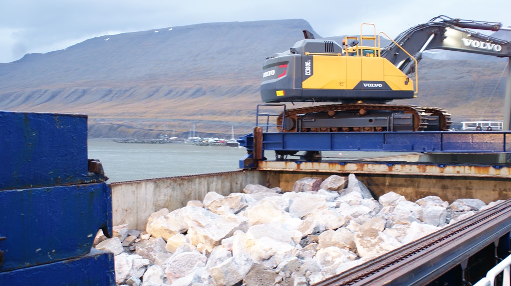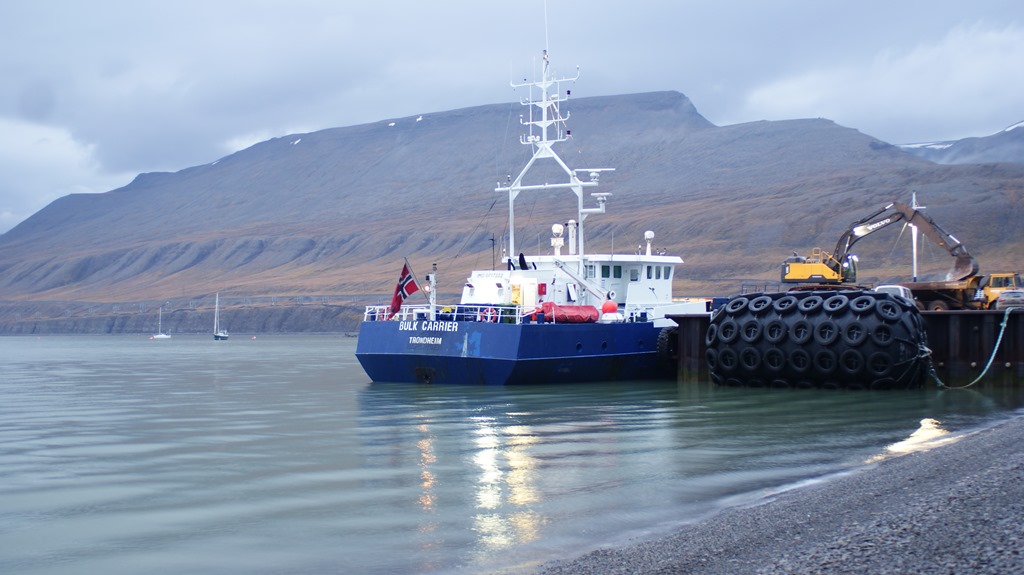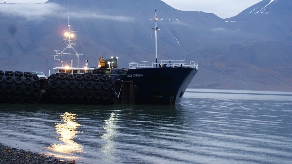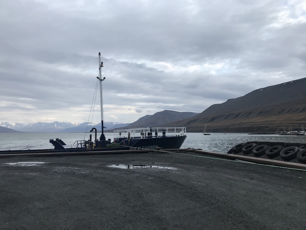 17:35 Förtöjda vid kolkajen i Longyearbyen.