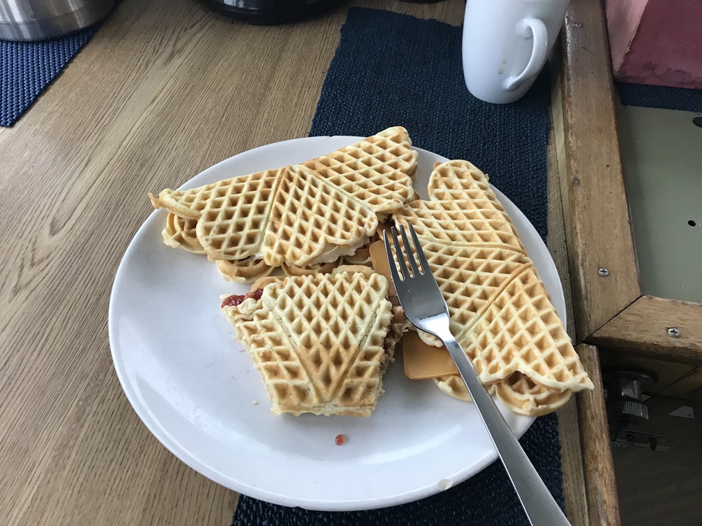 Till kaffet så kommer kocken upp med lite våfflor till mig och gratulerar mig på min födelsedag.