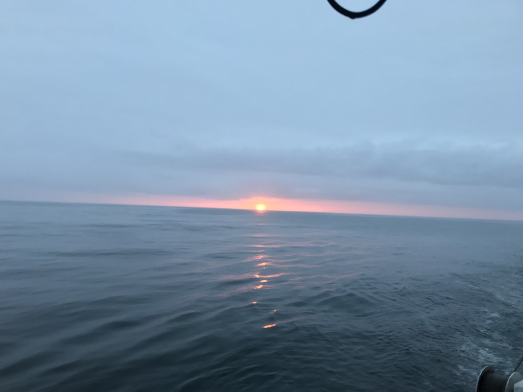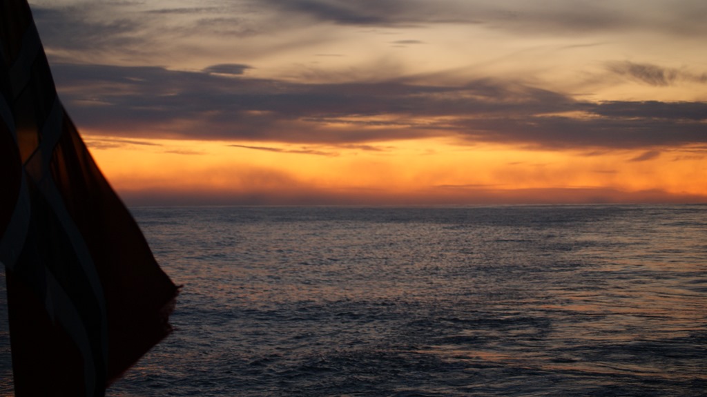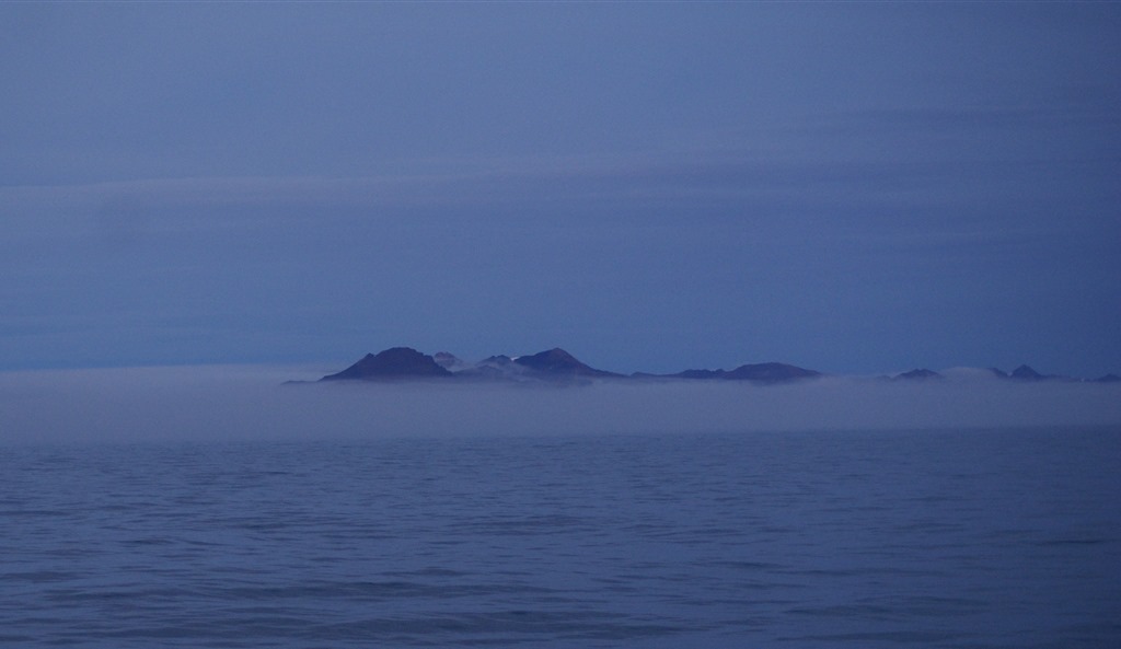 20:00 Kommer på vakt när vi passerar utanför Bellsundet. Nästan helt vindstilla men dimma.