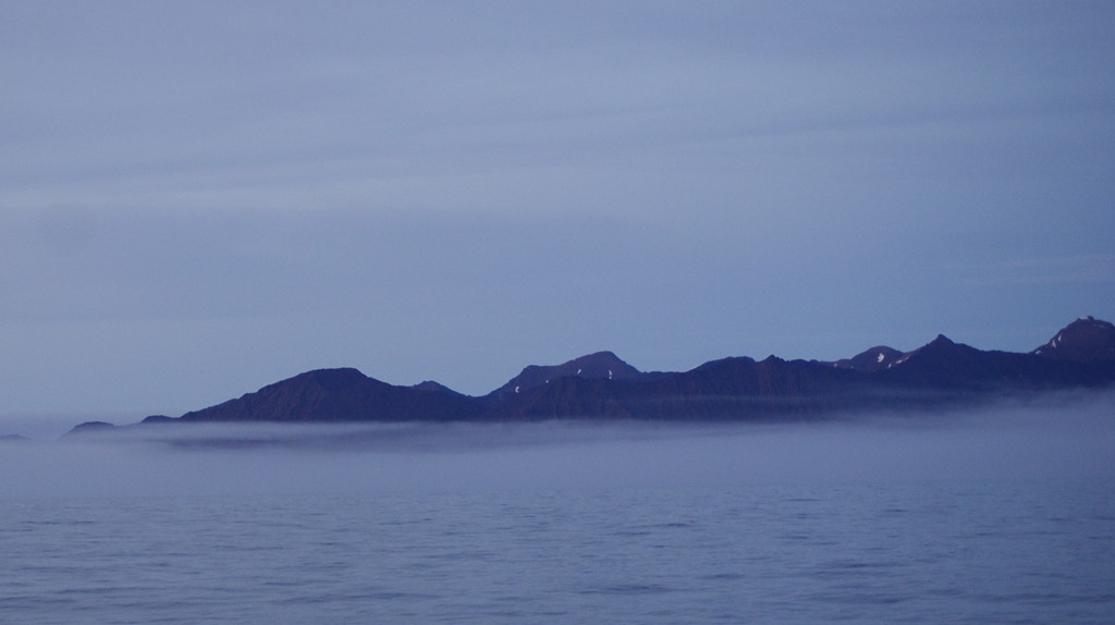 20:00 Kommer på vakt när vi närmar oss Björnöya. Det är fortfarande bara dyning men även dimma så man ser inget av Björnöya. Men jag tar hellre stilla och dimma än storm och klar sikt.