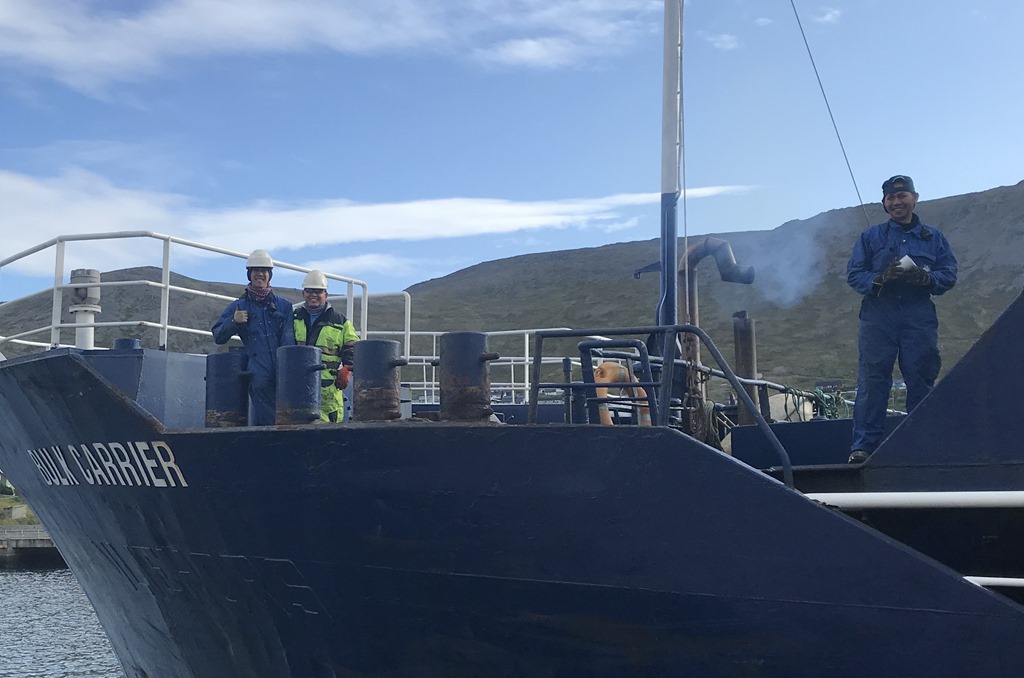 08:00 Kommer på vakt och ringer för att be rederiet ordna ett konto på Rema 1000 här i Honningsvåg så att vi kan proviantera.
