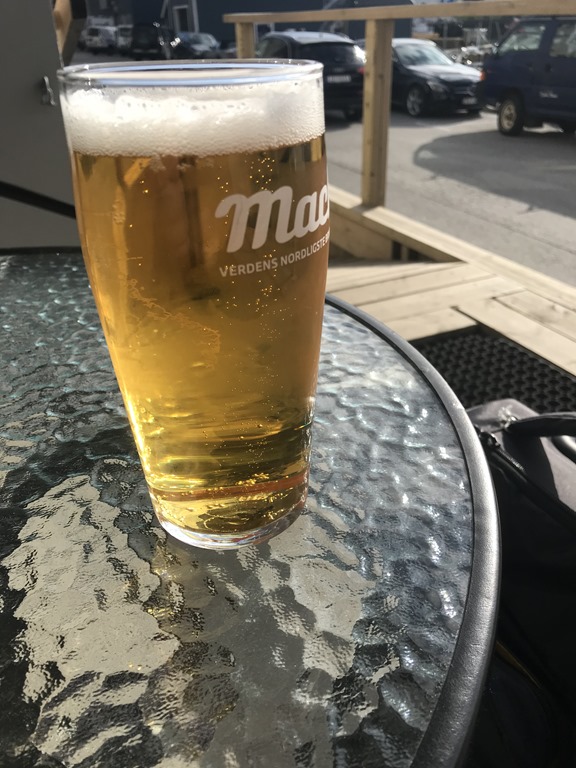 Det är en 2,5 km in till stan så då var det gott med en kall öl i solskenet med denna fina utsikten.