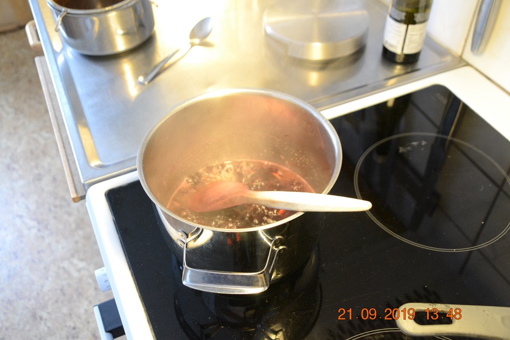 Till huvudrätt så gjorde jag först en rödvinssås.