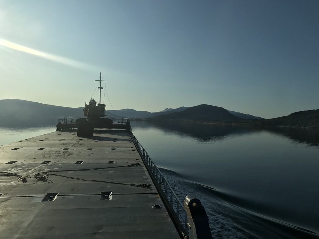 08:00 Kommer på vakt och fortsätter ner mot Tjeldsundet i strålande fint väder.