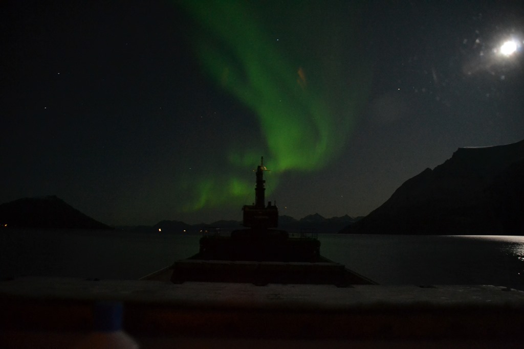 14:30 Förtöjda på Skattöra och börjar lossa. Hälsomyndigheten kommer ombord och inspekterar och under tiden så tar Kjell och följer Benjamin till flygplatsen. Sedan kommer Tromsö mek för att leverera delar till akter winchen som gick sönder i morse.