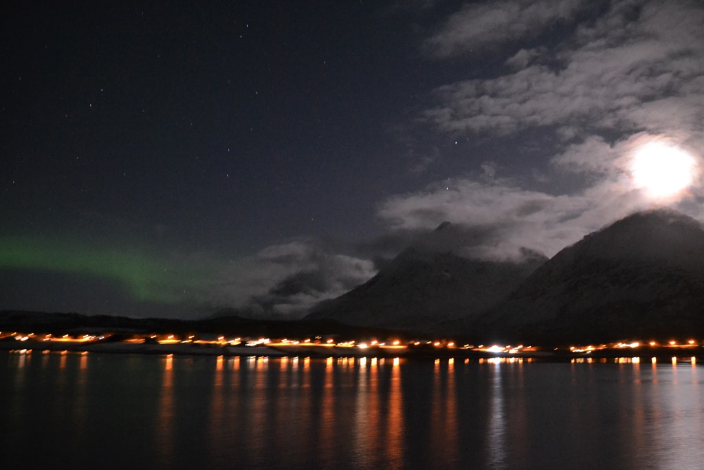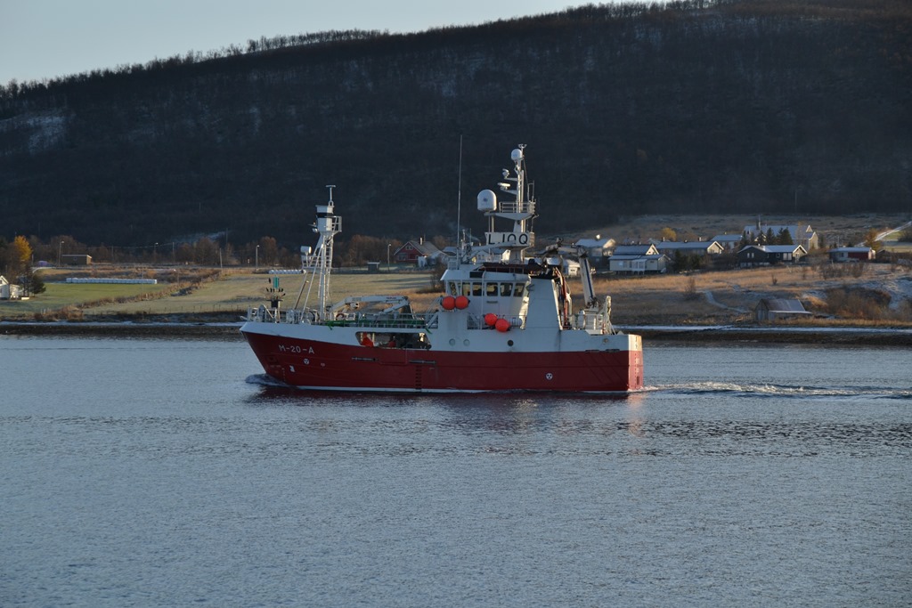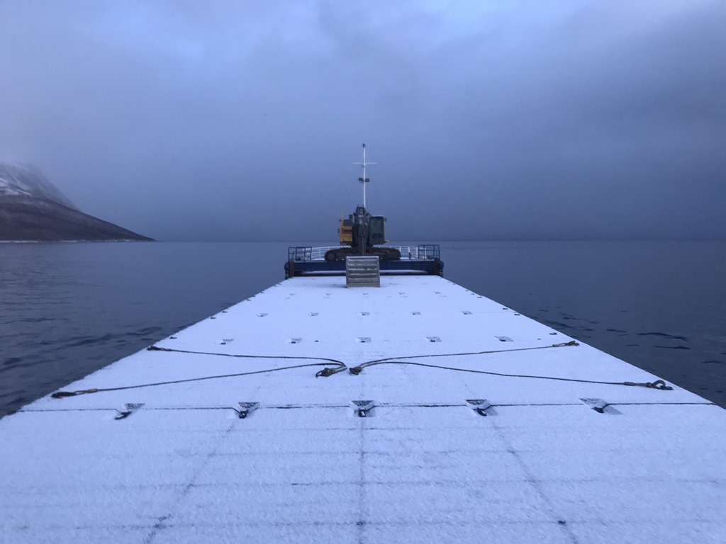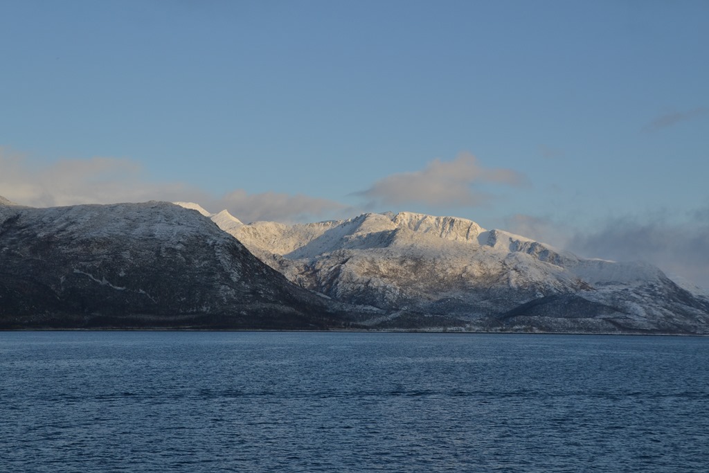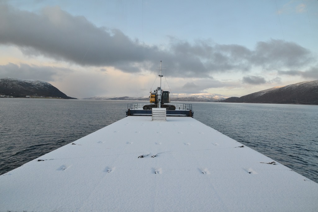 08:00 Kommer på vakt och vi går dead slow mot Tromsö. Det har kommit en hel del snö under natten.