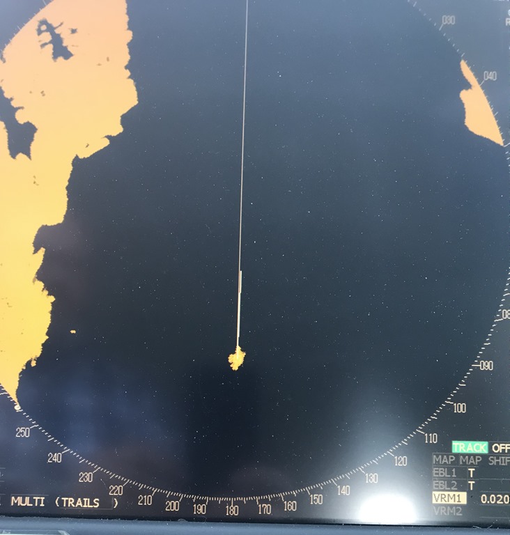 Strax efter så tar det i och blir helt bomtätt med snö. Men vi har ju en bra radar och även elektroniska sjökort. Här kan man se och jämföra bilderna.