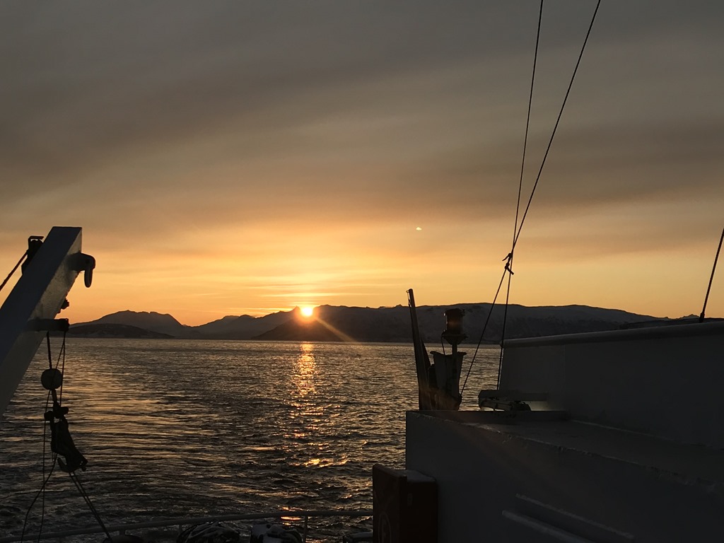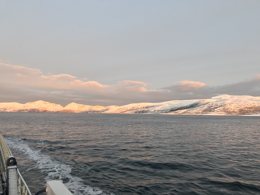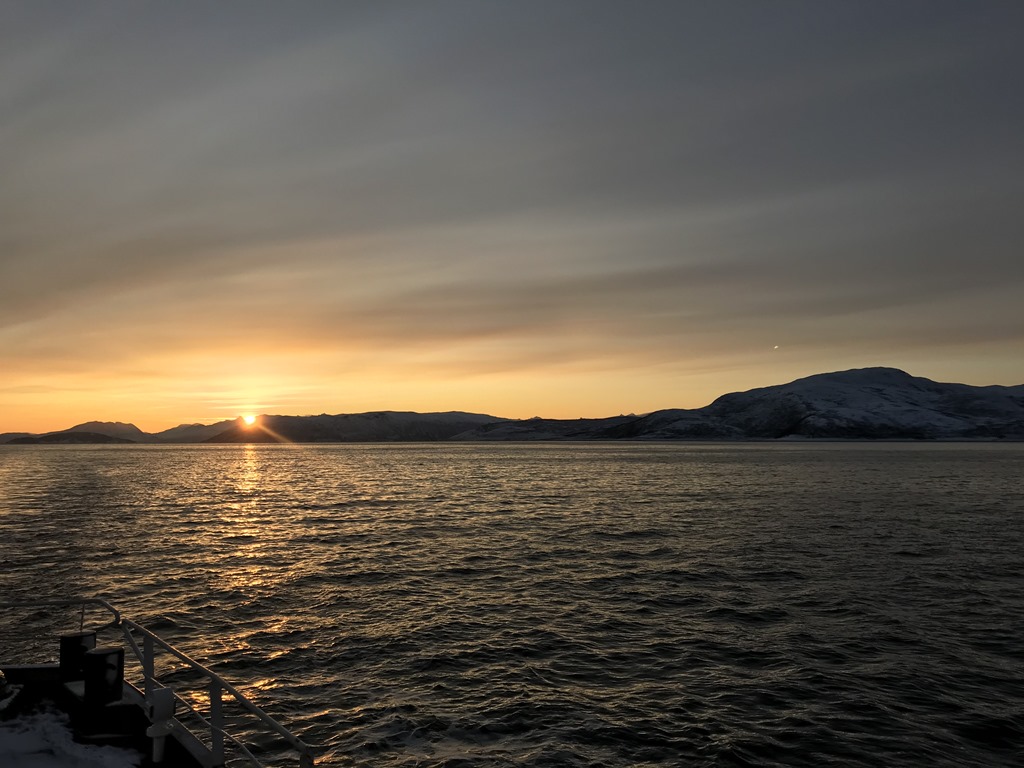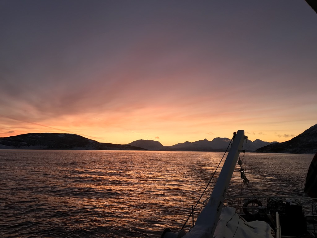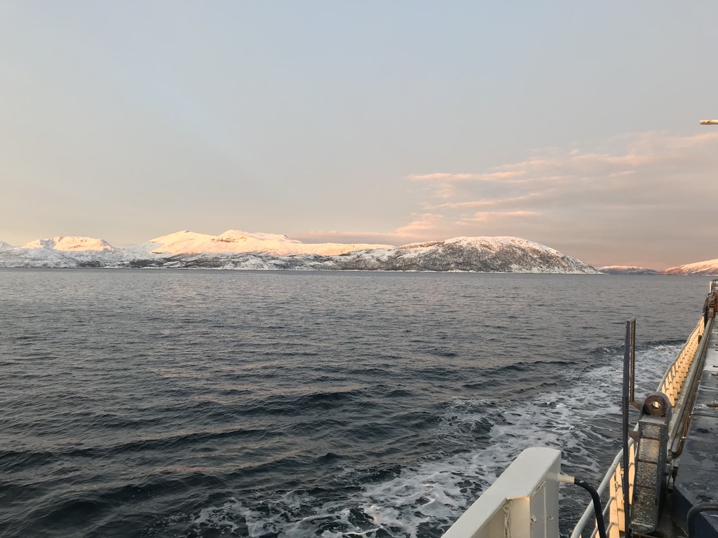 10:15 Förtöjda och kan börja lossa. Det är faktiskt från denna udden som den Norske motståndsmannen Jan Baalsrud simmade över sundet från Rebbenesøy till