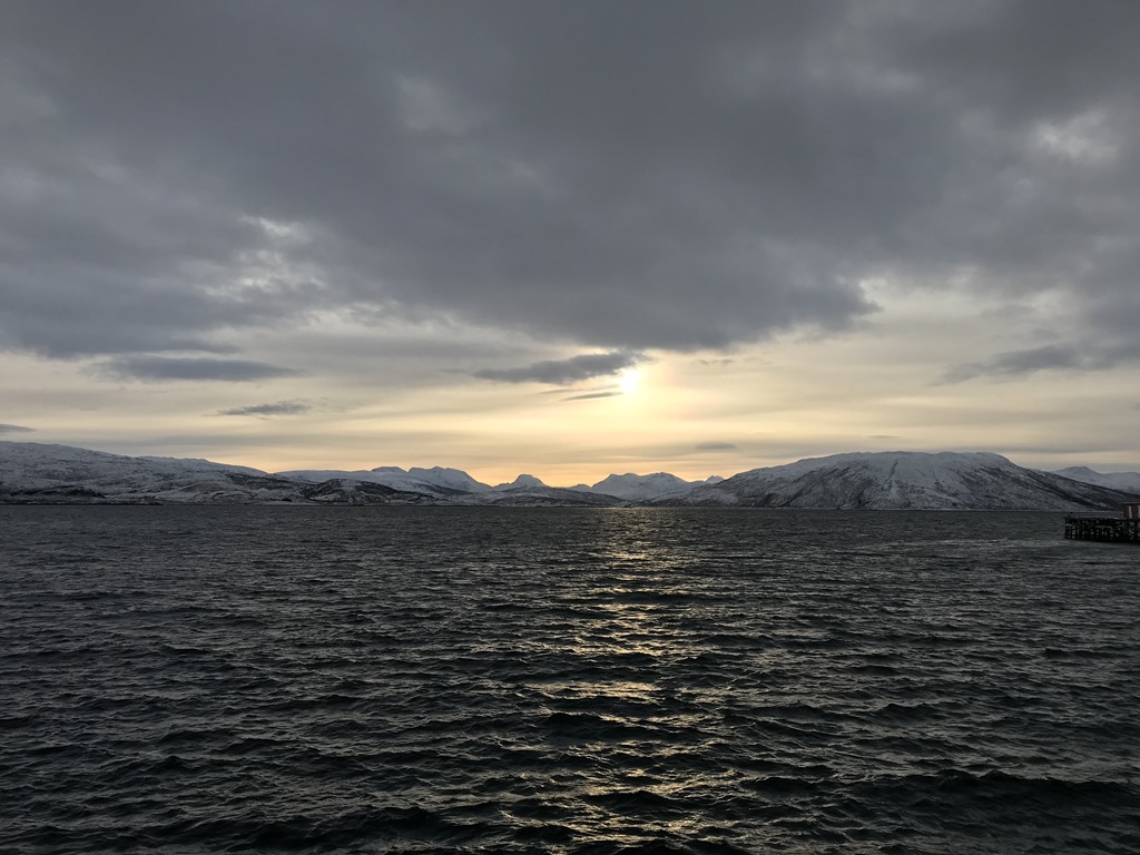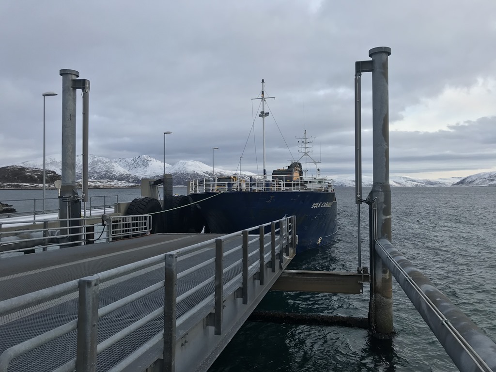 Ringvassøya mitt i kalla vintern. Det finns en väldigt bra film som heter den 12:e mannen som verkligen är sevärd. Den är delvis inspelad i Tyttebärvika där vi lastade.