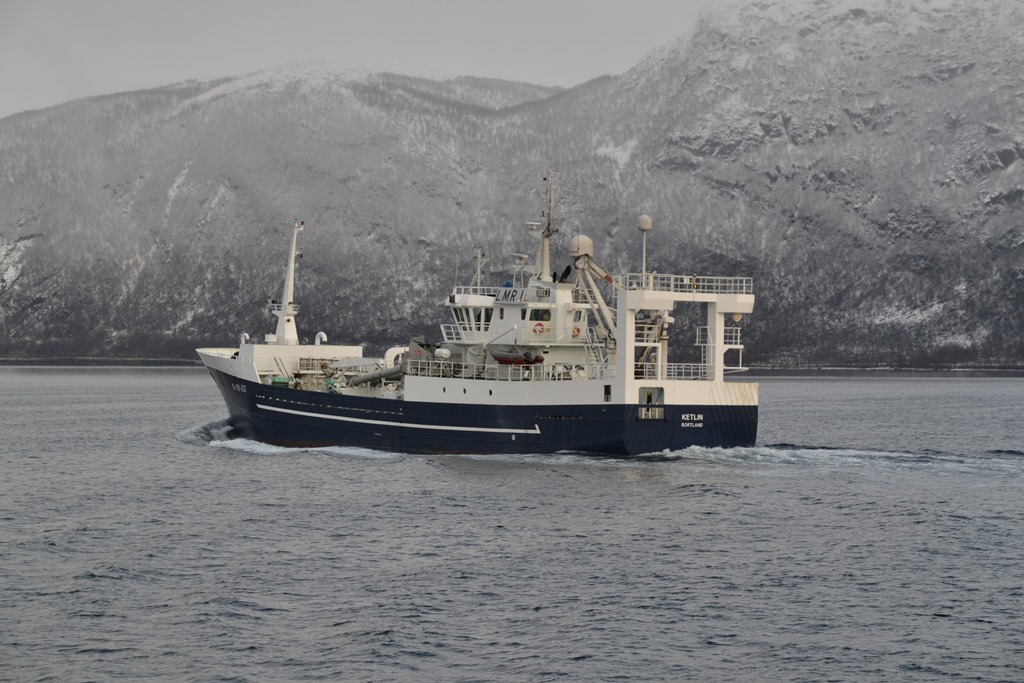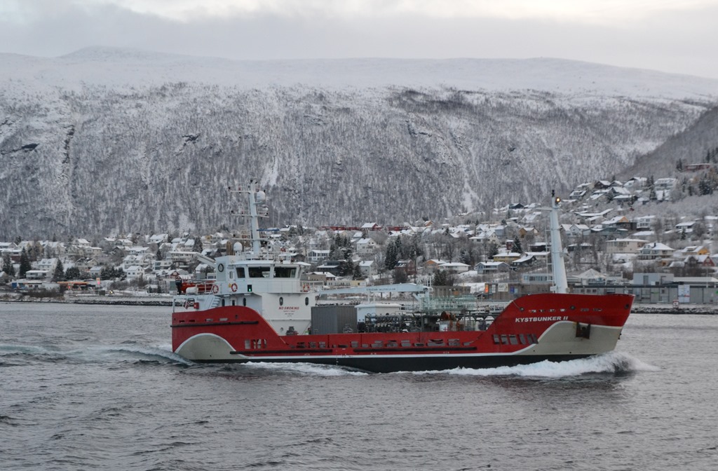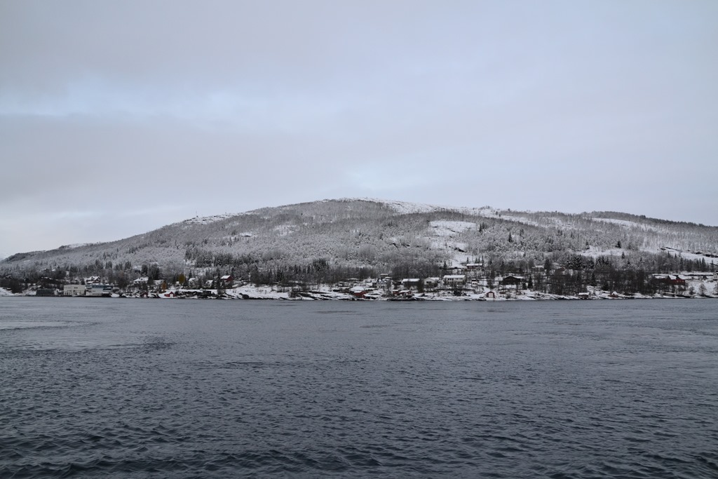 08:00 Kommer på vakt när vi närmar oss Grötsundet och fortsätter ner förbi Tromsö. Riktigt vinterväder idag.