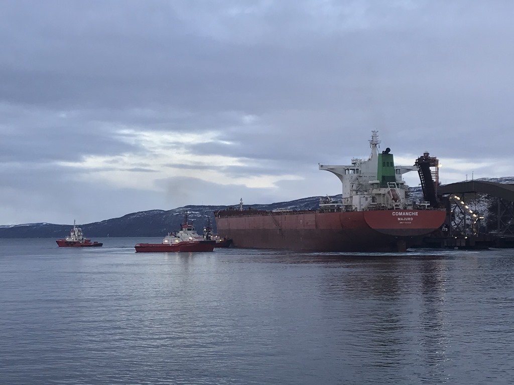 Bogserbåtarna ger sig ut för att assistera de stora Bulkbåtarna ut från kaj.