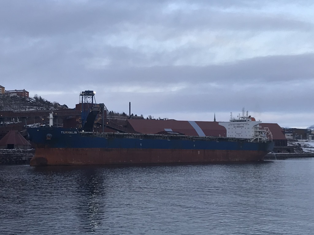 11:30 Färdig lossade och avgår från Narvik och sätter kursen tillbaka ner mot Mårnes.