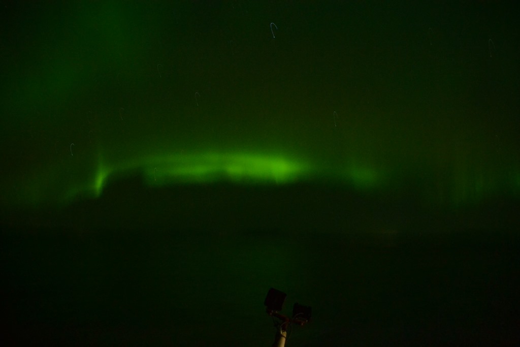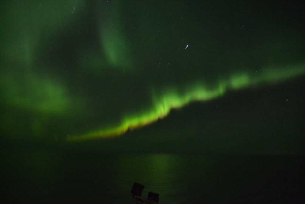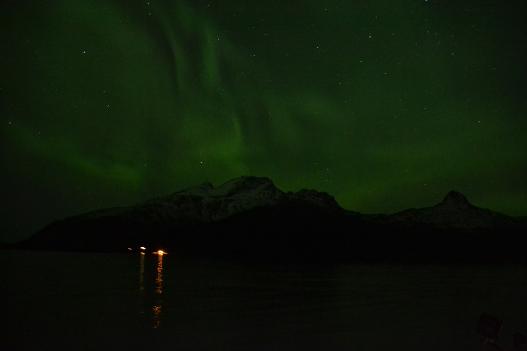 20:00 Kommer på vakt igen och fortsätter ner mot Mårnes. Blir lite norrsken i kväll men det rullar lite för mycket för att kunna få riktigt bra bilder.