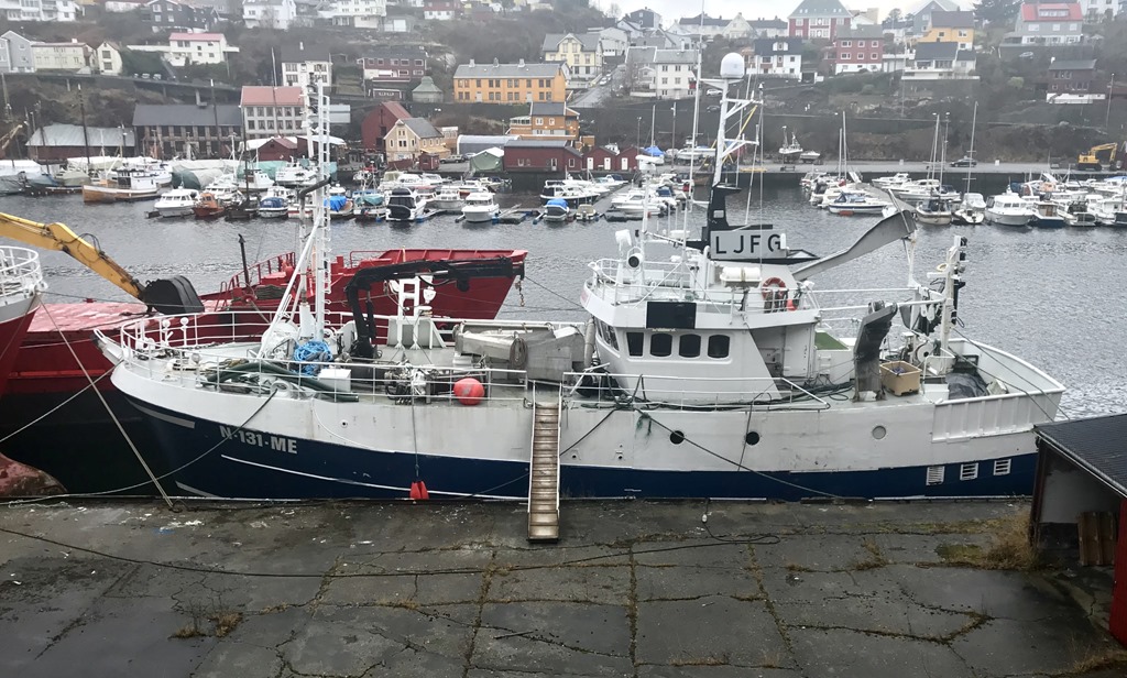 Vid 11 tiden så slutar det regna och jag går en runda. Det ligger en före detta svensk fiskebåt vid varvet som byggdes av plast åt Astrid på Rörö för vadfiske i Göteborgs skärgård. De var även framgångsrika med att finna ubåtar. Så till slut köpte Svenska marinen båten i tron att de skulle ha ett bra vapen mot ubåtar. Men det är ju inte bara att ha bra utrustning som räknas, man måste ju veta hur man tolkar bilderna på asdicen och veta hur skärgården ser ut i vanliga fall. Så efter ett par år gav marinen upp och sålde väck båten.
