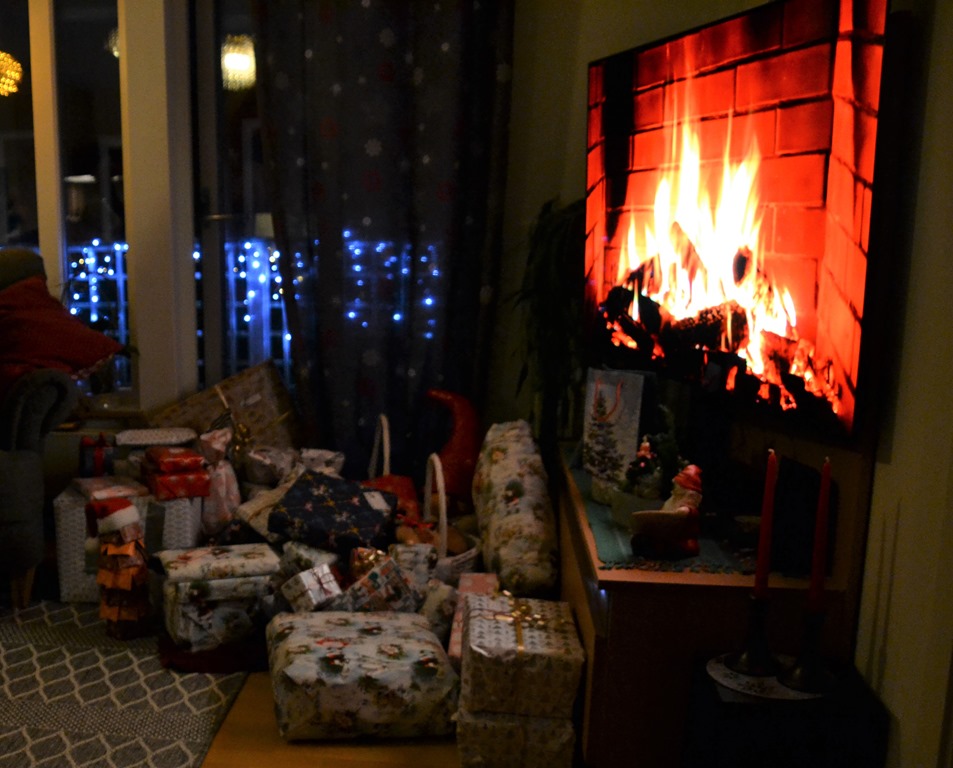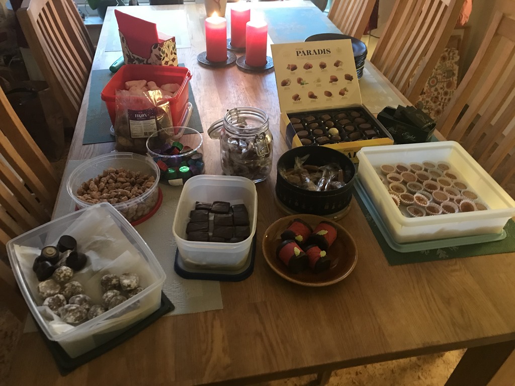 Proppmätta så satte vi oss framför tv’n för att se på Kalle Anka och jag dukade fram gottebordet som jag och Linnea hade gjort det mesta av.