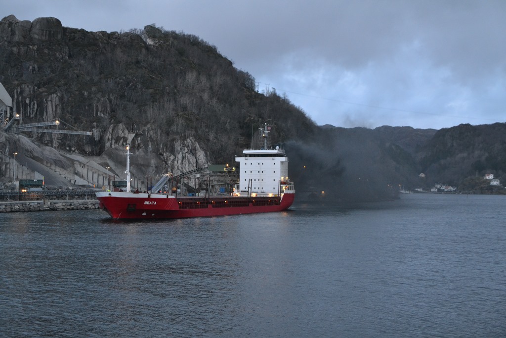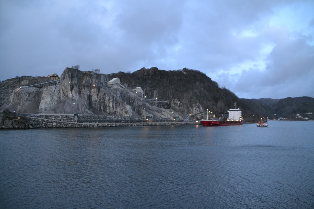 08:00 Kommer på vakt och vi börjar lasta. Det börjar så sakteliga att ljusna och det ligger en del båtar i fjorden.