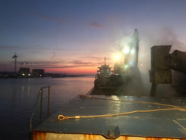 12:45-13:00 Förhalar ut till Kaj 12 för att lasta 500 ton aska i nog bags.