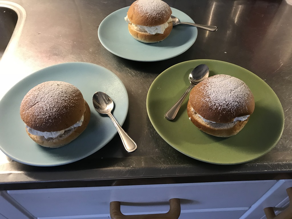 Ja jag fick göra några semlor till eftermiddags kaffet med. Linnea kom direkt från jobbet på bageriet och blev glad att jag hade köpt torskrom och räkor så hon vill stanna till ikväll.