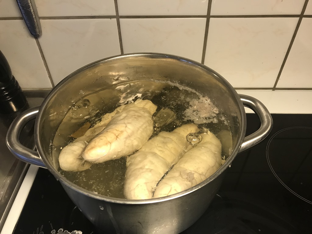 Hem och koka torskromen.