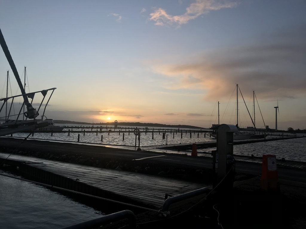 08:10 Går bort mot brandstationen och det är en riktigt fin morgon. Vinden har avtagit och vattnet har sjunkit undan.