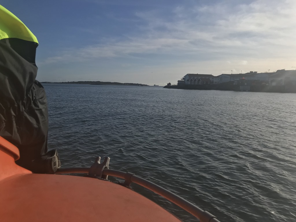 13:30 Min grupp går ut för att genomföra det sista momenten vilket blir livbåtsmanövrering. Kanske inte ger så mycket för oss oss varit Kaptener i så många år och är vana vid att köra betydligt större båtar. Men kursplanen är sådan och då måste de ju följa den.