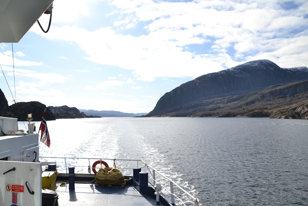 Stilla och fint väder men jag väljer att gå in genom Storfjorden eftersom vi har gott om tid.