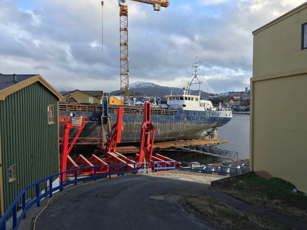 En gammal brönnbåt har varit inne på varvet och grejat. Härligt ljud i maskin när de avgår.