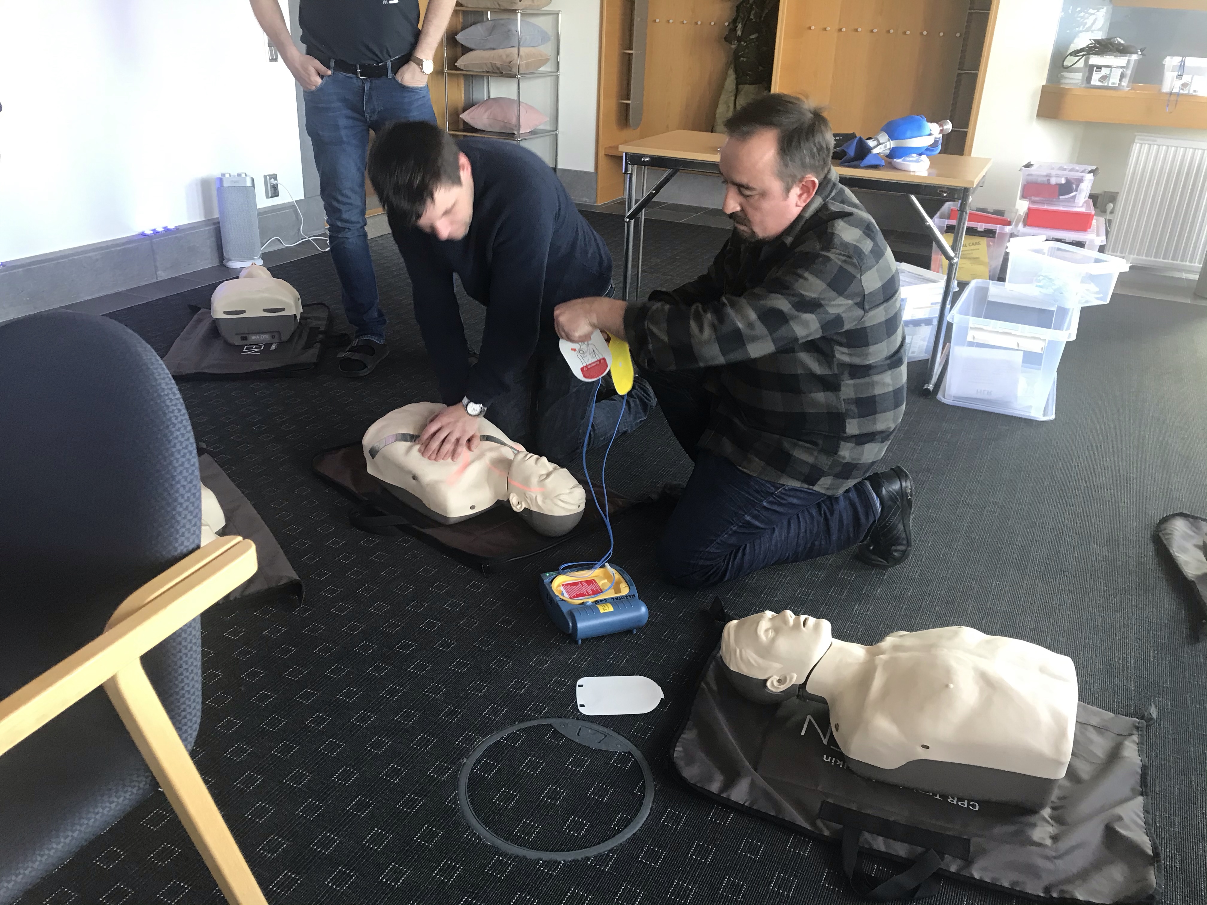 Efter maten så blir det HLR och hjärtstartare.