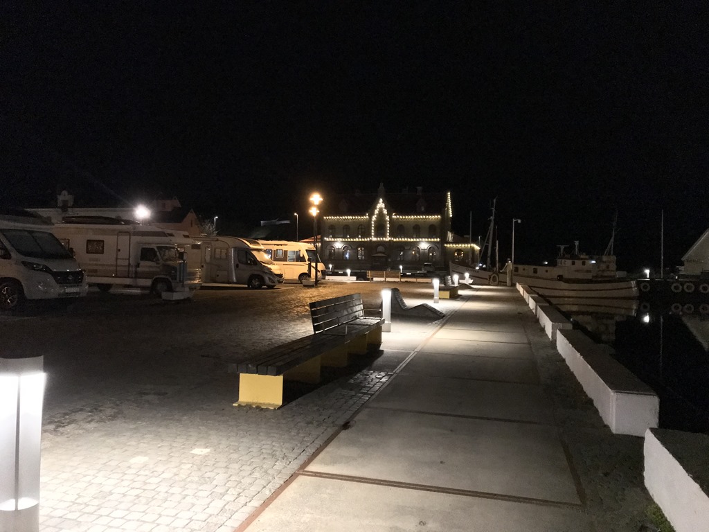 Vi fortsatte sedan ner till hamnen i Varberg där vi ställde oss på ställplatsen för första gången. Fanns en hel del att välja på nu när vi kom så tidigt. Men vi valde en lite längre in eftersom det blåser lite. Därefter så gick vi bort till Fiskexporten och köpte färska räkor inför kvällen.