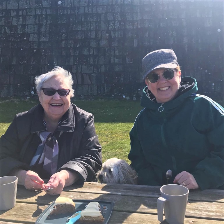 På vägen tillbaka så ringde vi till Anita för att höra om hon ville ta en kopp kaffe vid fästningshörnan. Det ville hon gärna och kom ner och mötte upp oss för lite kaffe och morotskaka som Linnea bakat.