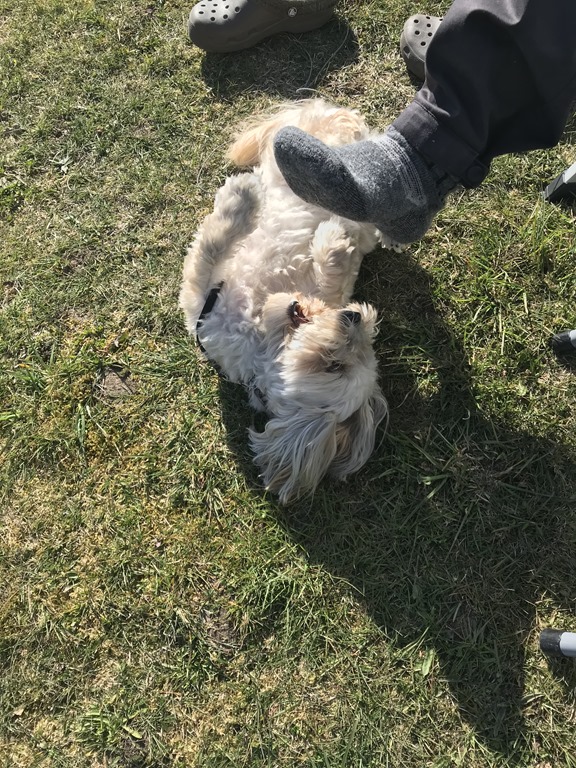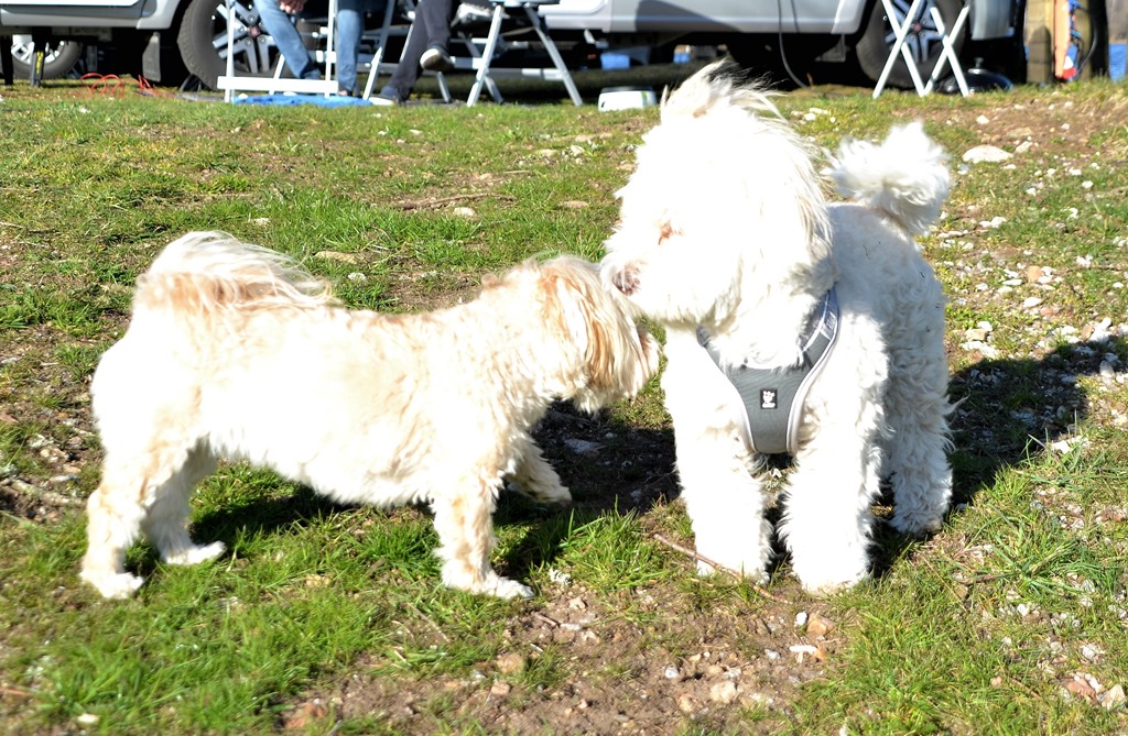 När vi druckit kaffet så kom det en liten Bichon Havanais som hette Bingo och hälsade på Chilli.