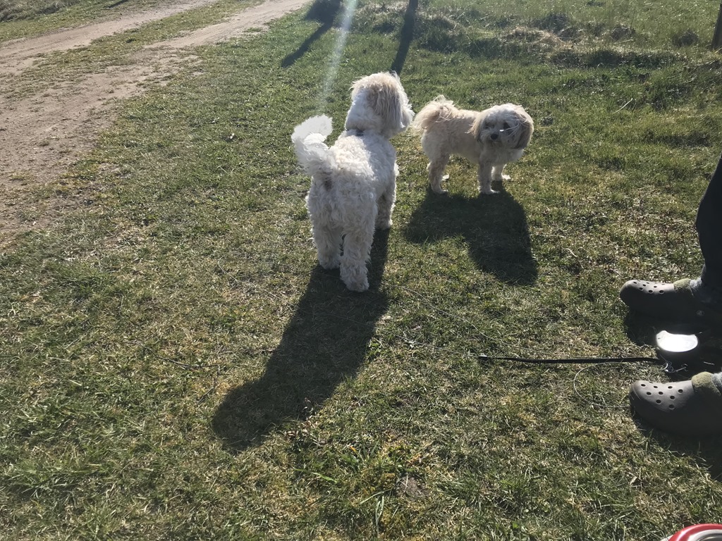 Trotts att det skiljer 3 år på dem så är ju bingo betydligt större, men så är han ju en hane. Var ju bara de två och så himla lugnt och fint här så de fick gå utan koppel och utforska lite.