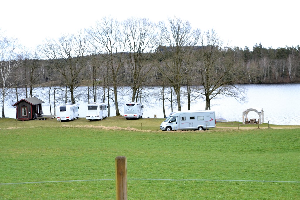 Väl framme på ställplatsen så satte vi oss nere vid sjön och åt lite lunch bestående av grillade rev och potatissallad.