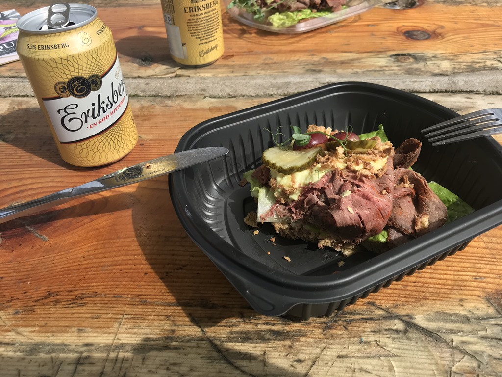 Till lunch blev det varsitt Smörrebröd och en kall öl. Chilli fick sig en morot.