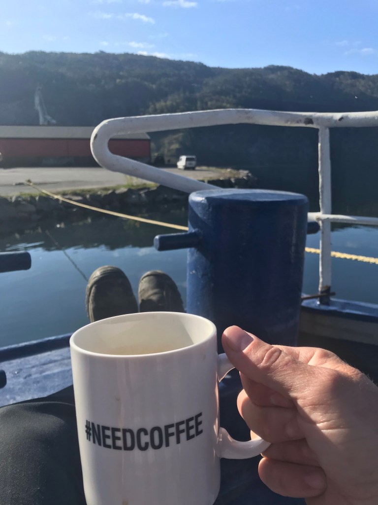 08:00 Kommer på vakt och sätter på kaffe. Riktigt fin morgon även om det är lite kallt ännu.