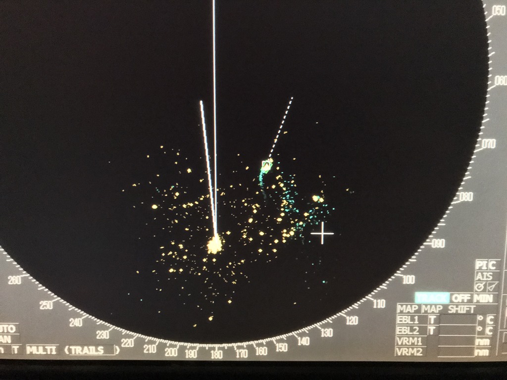 Närmar oss Jaerens rev så får jag upp ett eko på radarn men ser inga ljus.