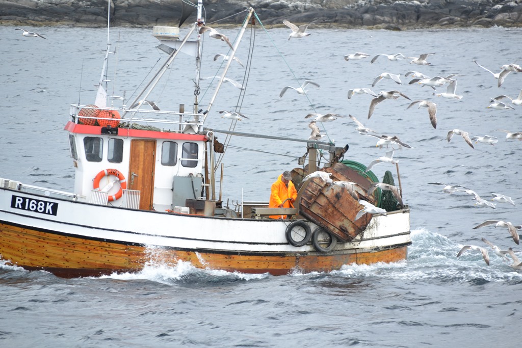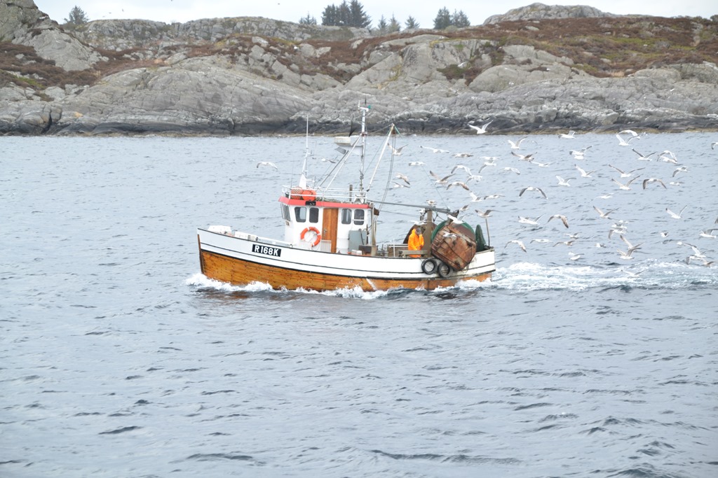 Går utåt och genom Boknasundet och sedan vidare norrut genom Karmsundet. Passerar en fiskebåt som påminner om min gamla båt.