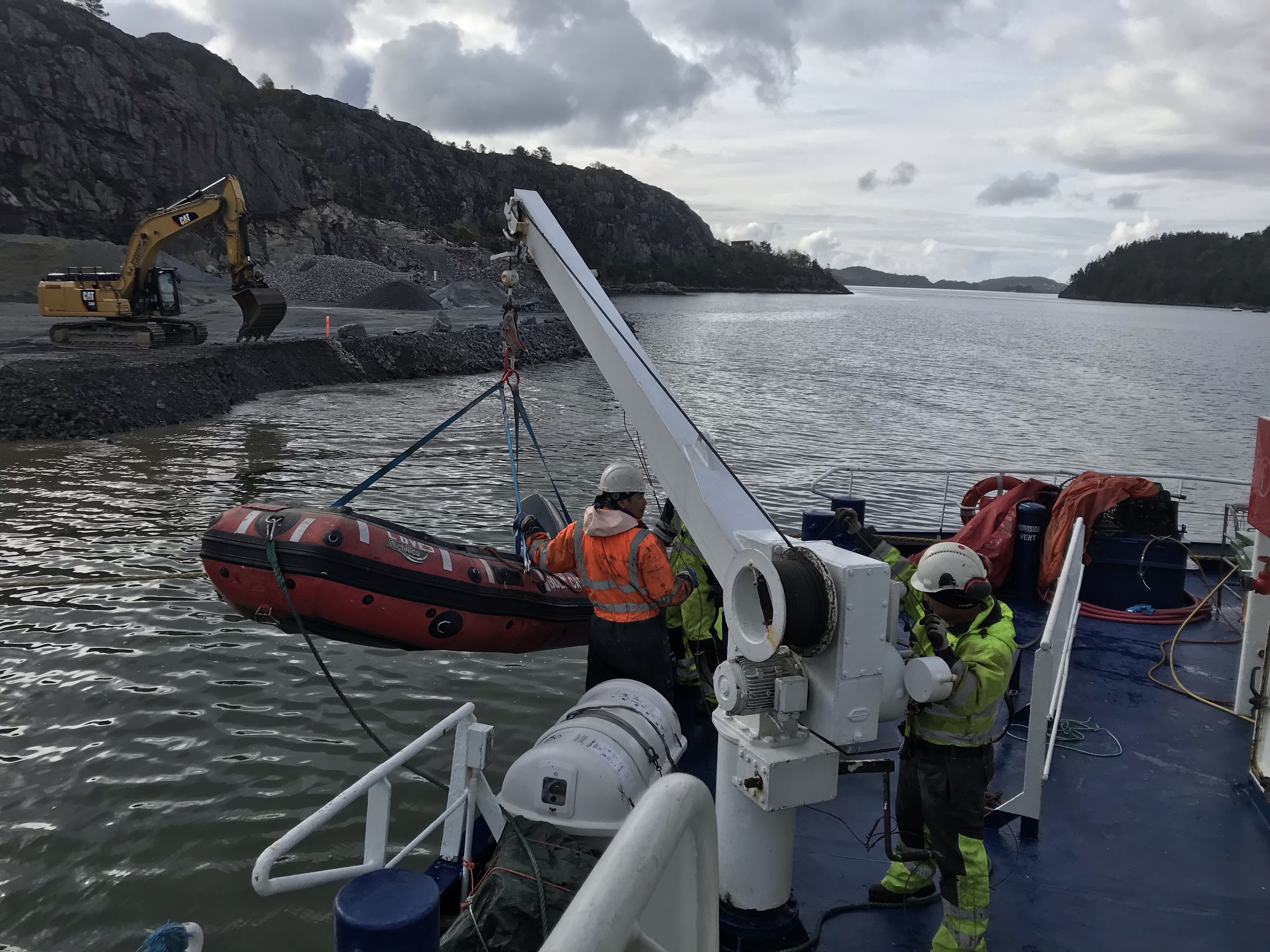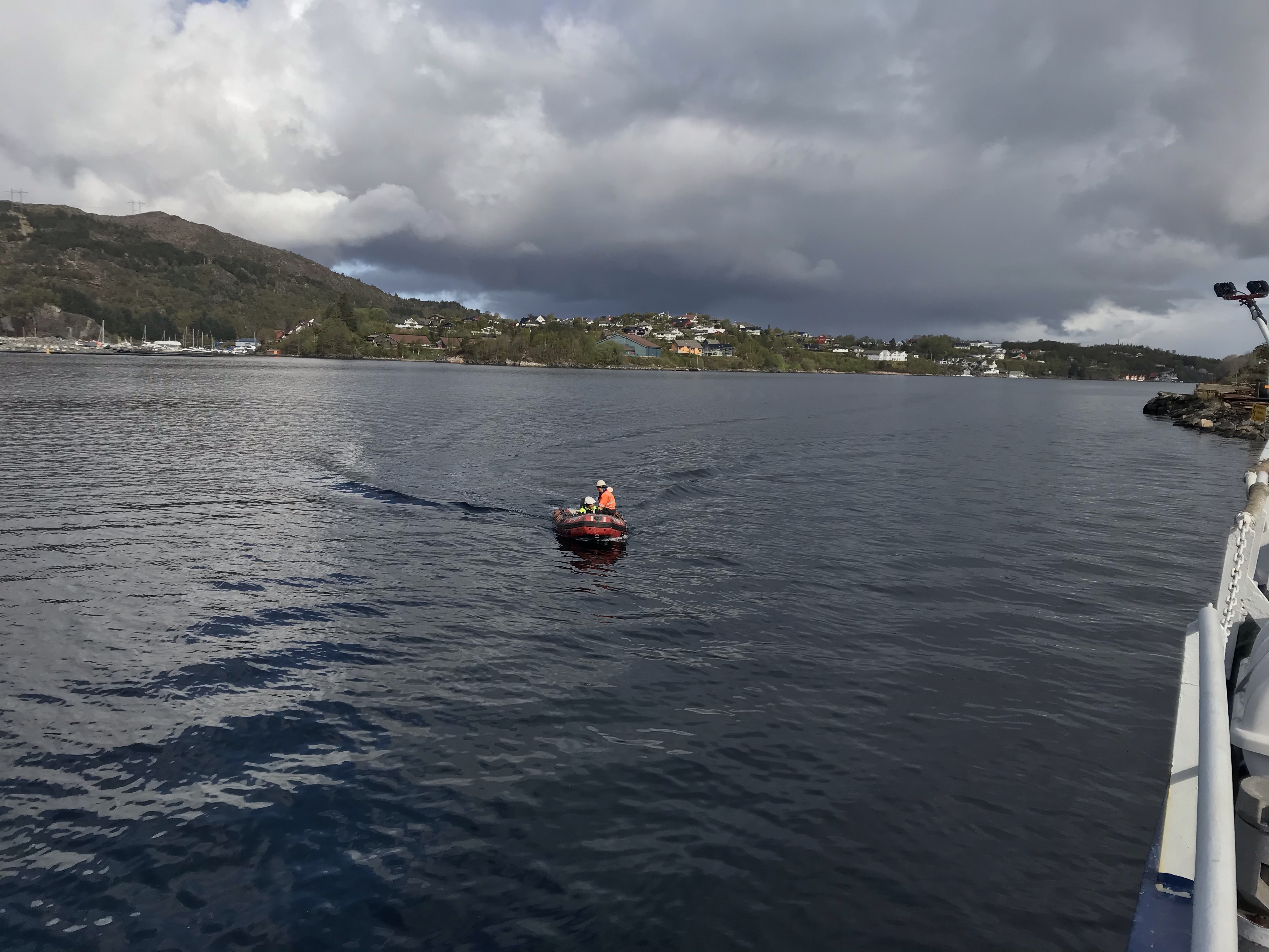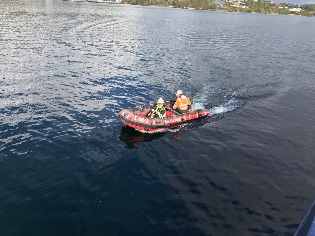 Benjamin börjar lossa och vi andra genomför en MOB övning och sjösätter MOB båten.