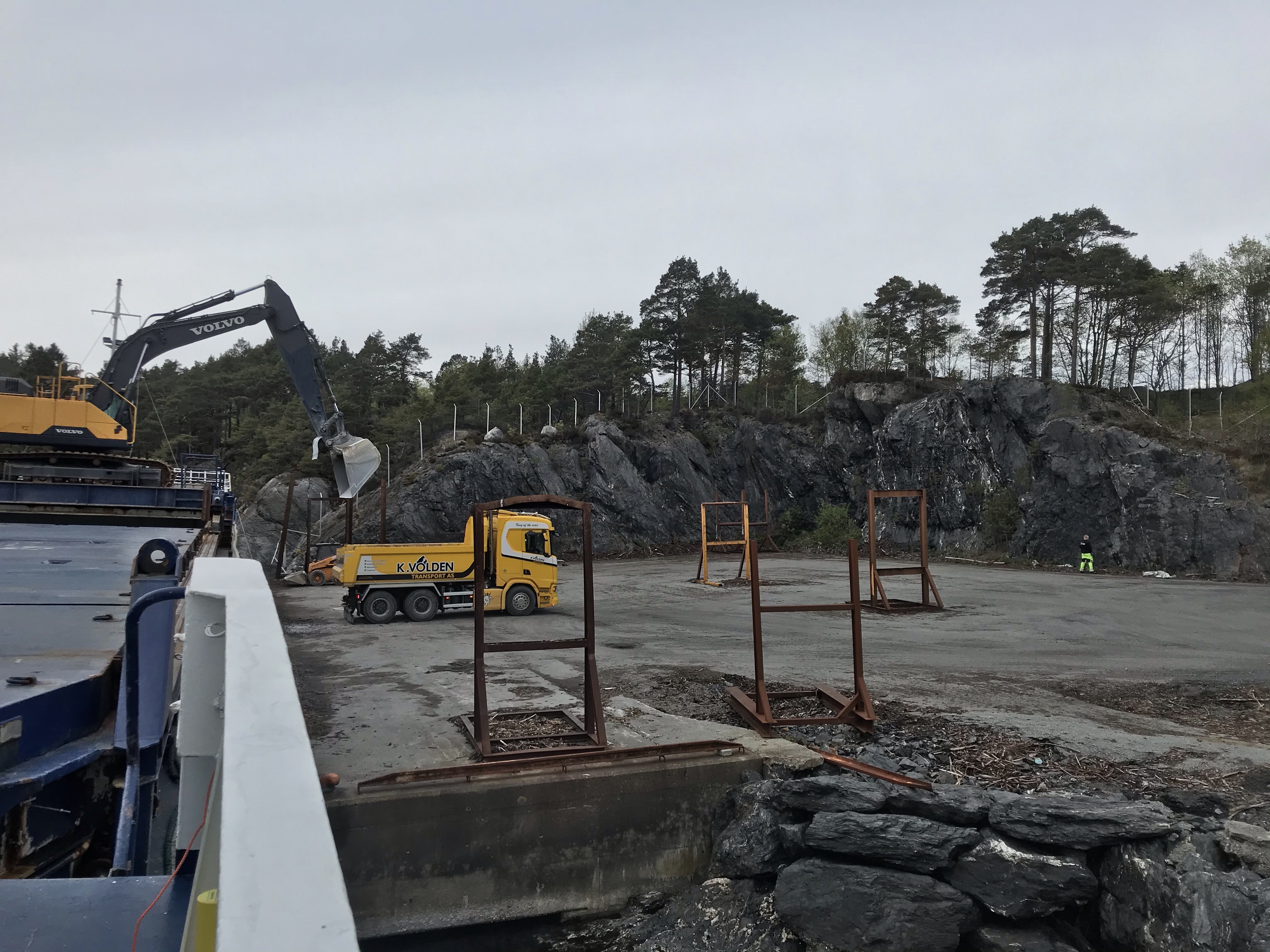Pratar med chefen för lastbilarna och kommer överens om att vi ska börja lossa så får vi hoppas att maskinen inte stoppar innan vi fått ombord Volvo igen.