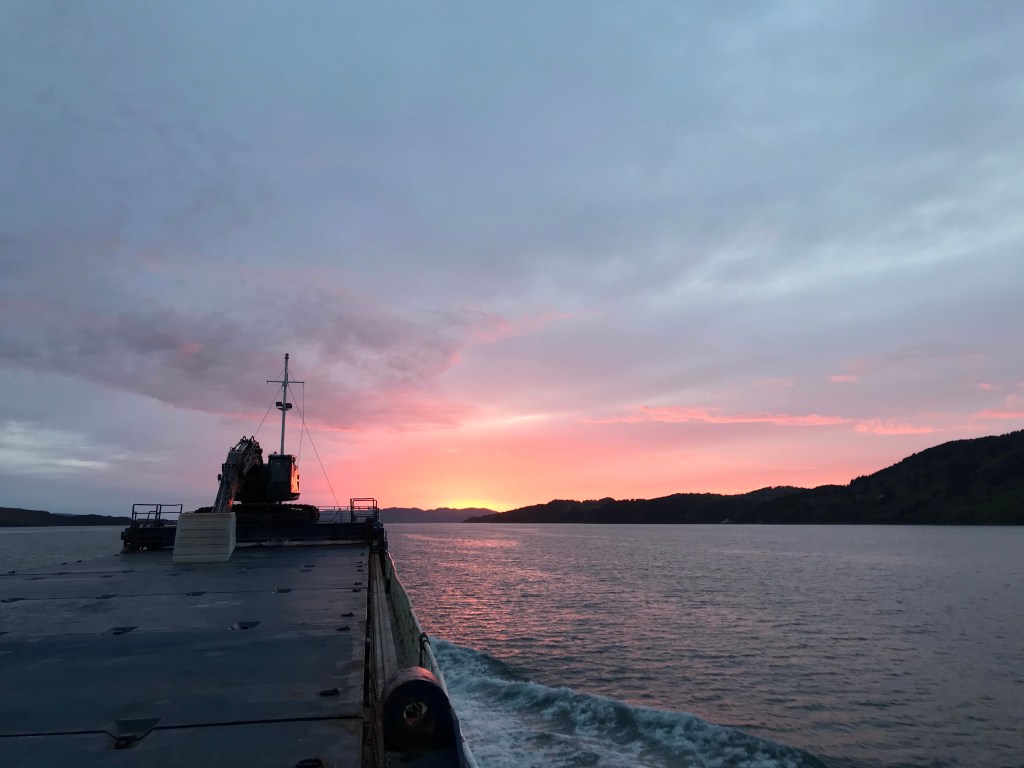 20:40 Färdig lossade och avgår. Vi sätter kursen norrut mor Skålevik för att bunkra diesel.
