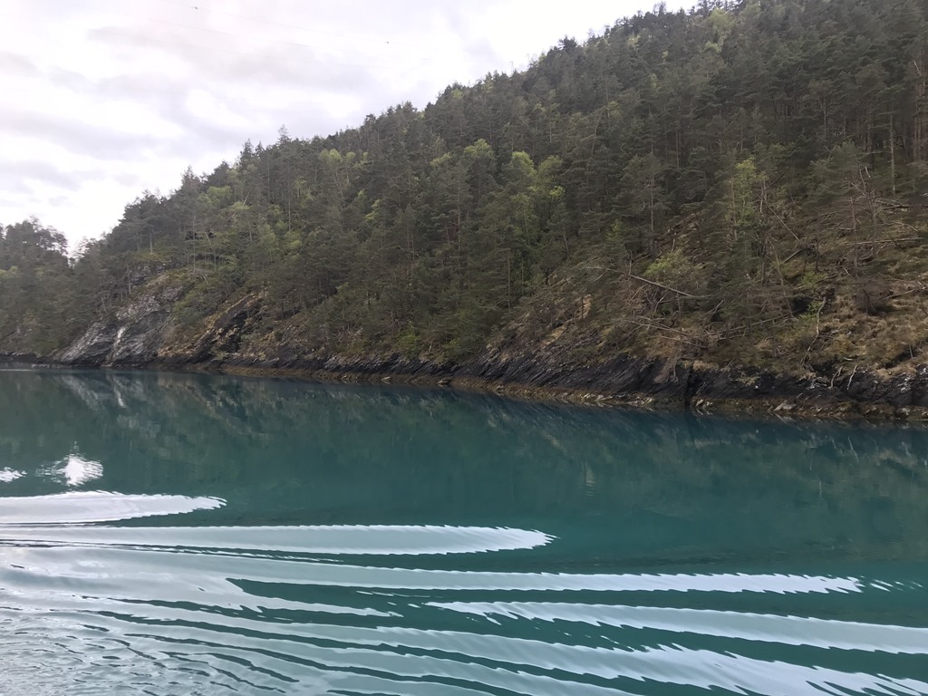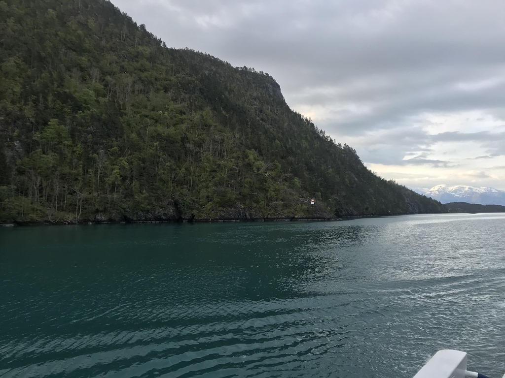 20:30 Färdig lossade och avgår mot Odda. Vinden har avtagit men det är ganska mulet och kommer regnbyar.